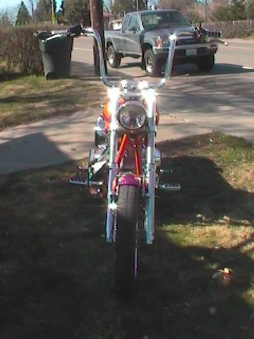 ![]() General: Owner: could be you! Year/make:'02/Pro street FXR Frame: Stretch: 4 inch Engine: size/type 80cu inch evo. carb: s&s Ignition: Spike Pipes: Bubs Cam: Woods Transmission: Year/Type: jims 5 speed Clutch: Barnett Suspension: Rear: Works Performance Forks: 39mm Wheels: Performance Machine Tires: Avon Finish: painter: G&S Customs Accesories: Headlight: Headwinds Hand&foot Controls: HD Seat: Highend |